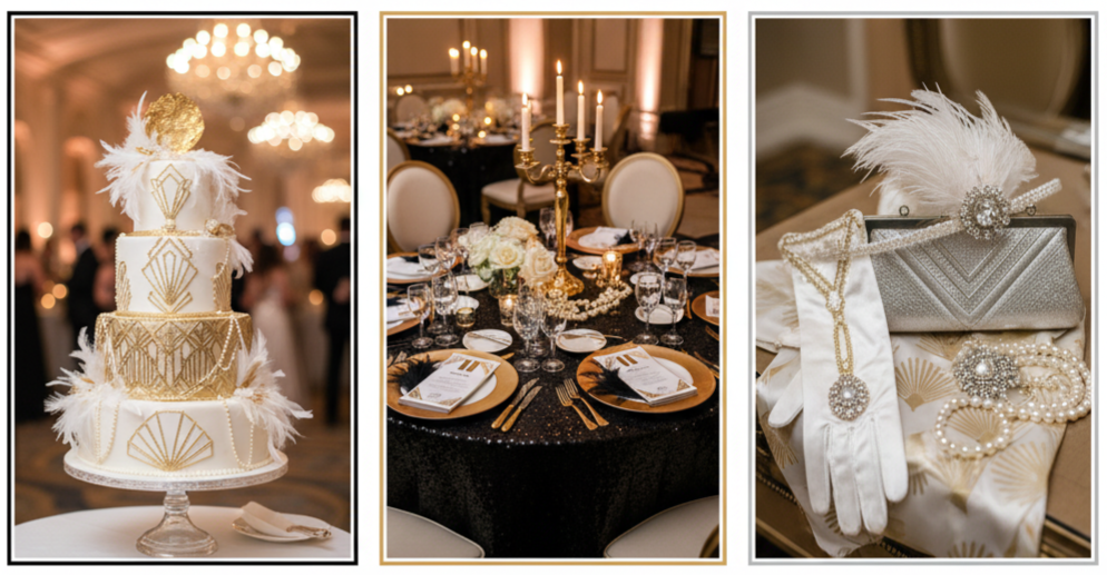 | 1920s | Sequins, feathers, Art Deco | Gold, black, ivory | Ballrooms, historic hotels |