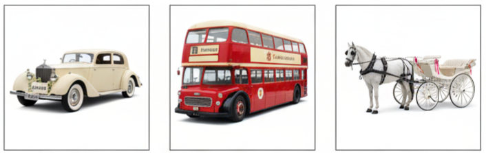 - Retro Buses or Trolleys: These are ideal for transporting the wedding party or guests and add a fun, coordinated touch.