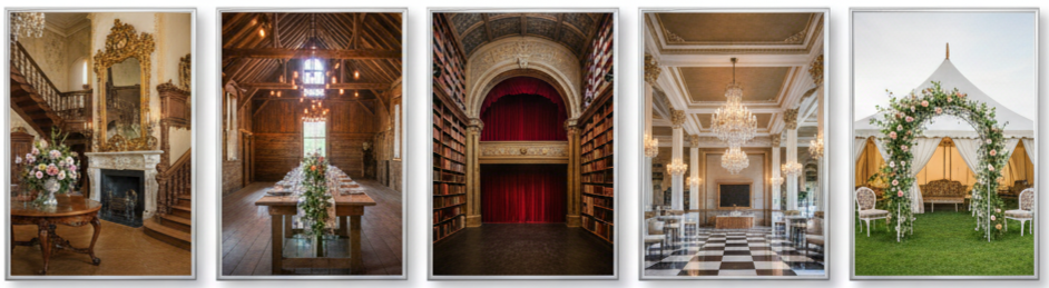 - Historic Homes and Estates: These offer natural vintage charm with ornate architecture, fireplaces, staircases, and formal gardens.