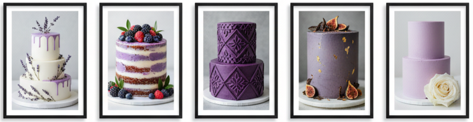 Boho beach weddings look amazing with watercolor purple cakes brushed with blush tones and topped with edible flowers. Vintage ballroom events are perfect for deep plum fondant cakes with intricate lace detailing and gold trim. And for rustic barn weddings, semi-naked cakes with light purple buttercream and fresh lavender sprigs create a cozy, natural charm.