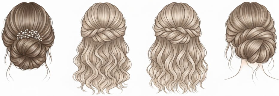 - Headbands and Tiaras: These accessories work best with half-up or full-down styles. Pick lighter ones so they stay in place all day.
