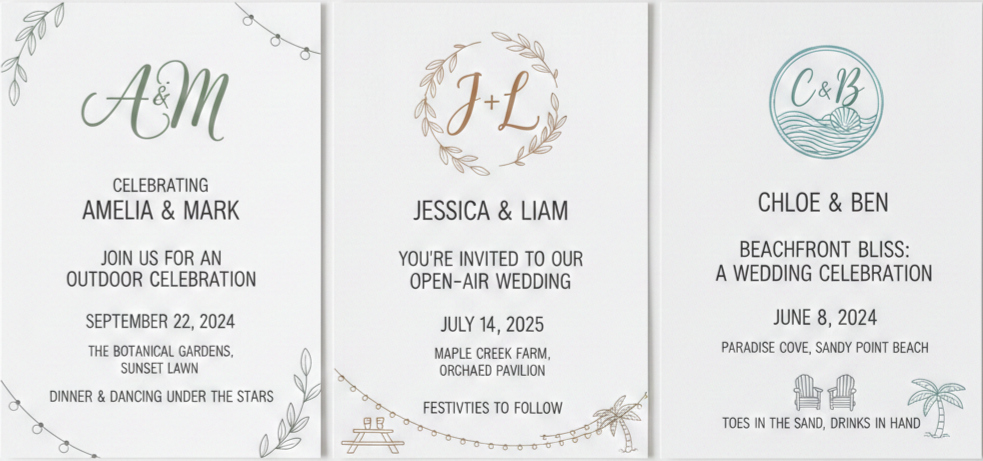 - Great For Relaxed Venues: Backyard weddings, gardens, and beach settings pair naturally with casual stationery.