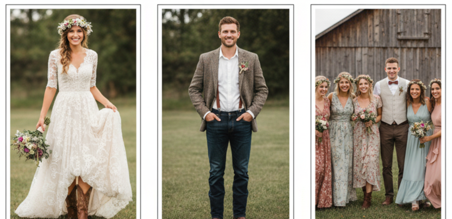 - 1960s–1970s Boho: Perfect for couples who love relaxed, nature-inspired weddings filled with crochet details, floral crowns, and outdoor settings.