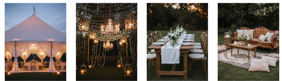 - Modern Spaces with Vintage Flair: Even a contemporary venue can transform with antique décor, string lights, and draped fabrics.