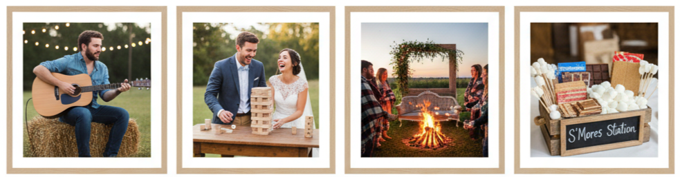 - Add games: Outdoor games like giant Jenga, ring toss, or cornhole keep everyone entertained.