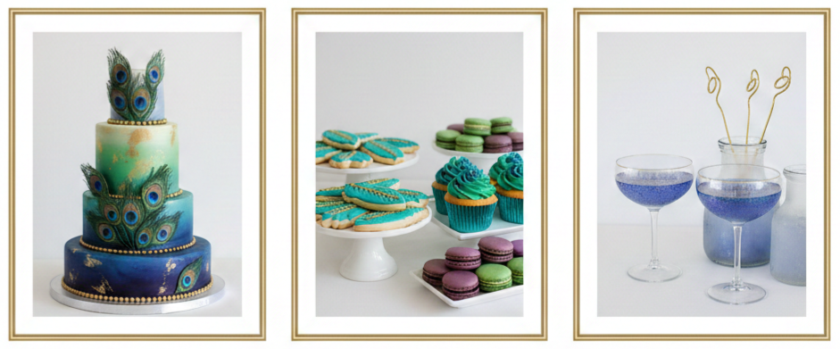 - Save-the-dates: Set the tone early by carrying your peacock color scheme into the first piece of mail your guests receive.