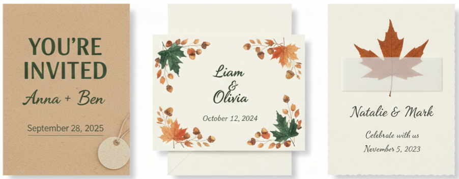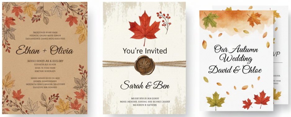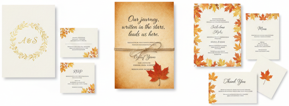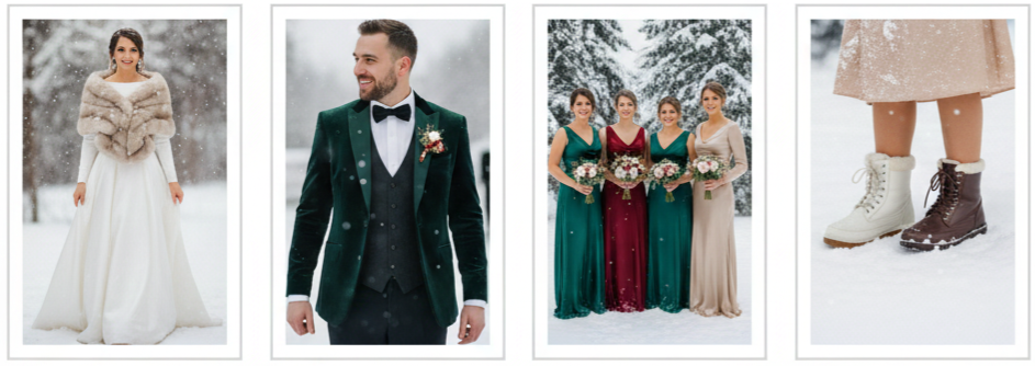 - What grooms wear: Grooms can get creative with velvet tux jackets, layered wool suits, or rich color tones that blend well with the seasonal theme.
