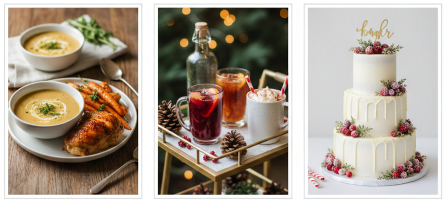 - Meal planning: Winter weddings are the perfect excuse to serve warm, comforting meals. A cozy soup to start, hearty mains like roasted chicken or beef, and seasonal sides like glazed carrots or herb stuffing will keep your guests happy.