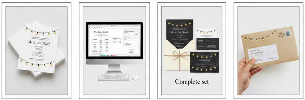 Lots of couples have used the Iwpi022 P 626 to tie their wedding theme together from start to finish. One bride chose this design for her barn wedding and used real string lights at the reception to mirror the invite. Another couple added chalkboard signage throughout their venue to carry the look all the way through the event.