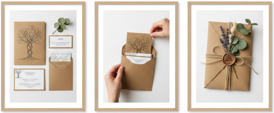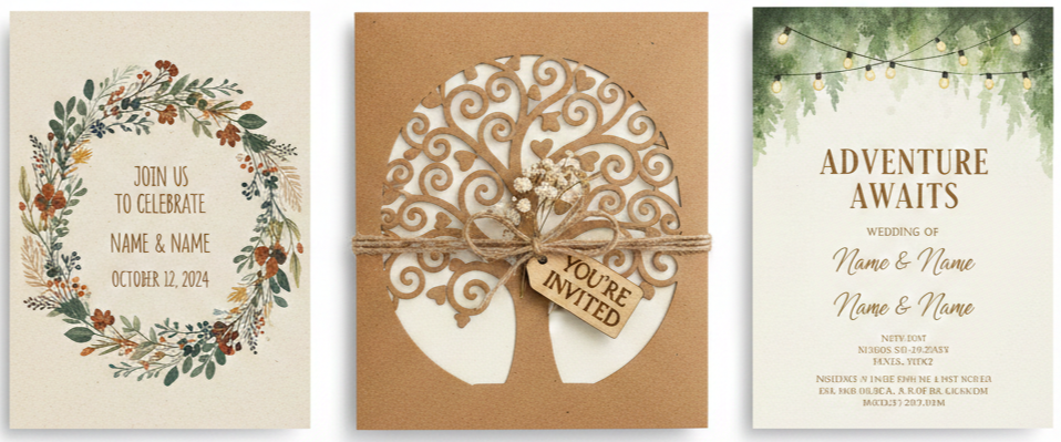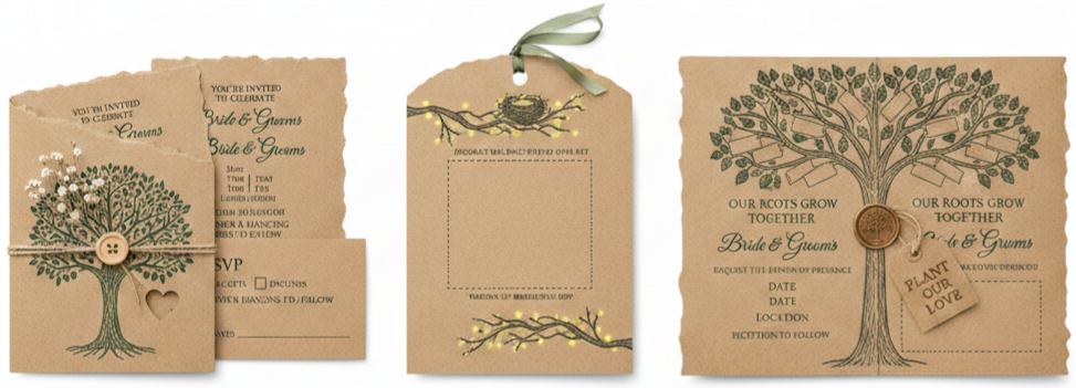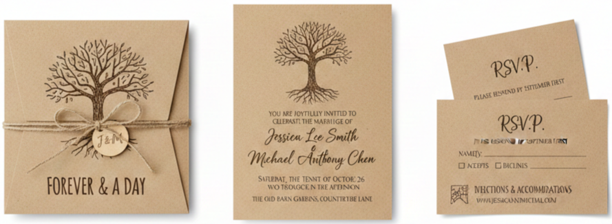 | Main Invitation Card | Yes | Rustic tree design printed on kraft paper. |