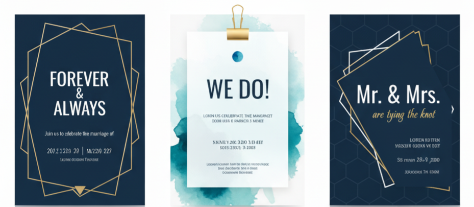 • Fonts: Elegant scripts work best for romantic themes, while modern sans-serif fonts suit minimalist or contemporary designs.