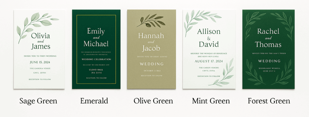 - Minimalist Typography: Clean, simple invites with green text or accents are perfect for modern weddings. They’re sleek, stylish, and uncluttered.
