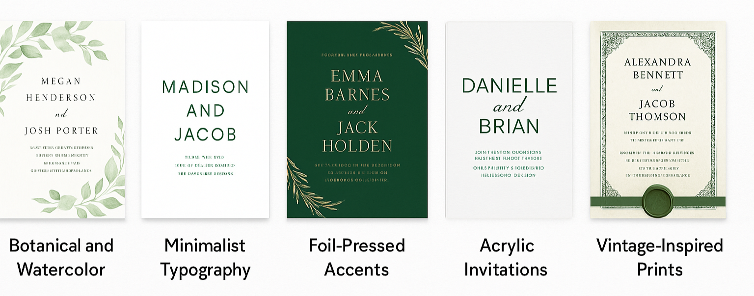 - Foil-Pressed Accents: A touch of gold, silver, or rose gold foil adds sparkle and sophistication. Foil works especially well with deep greens like emerald or forest.