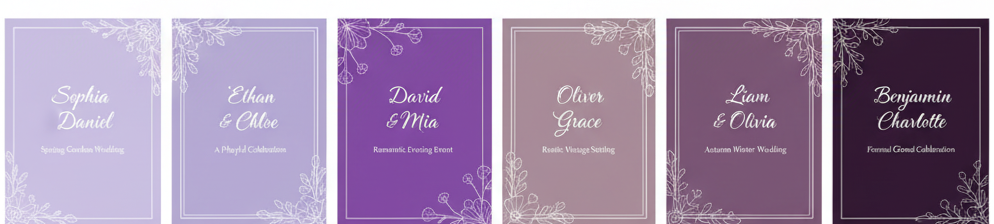 - Typography: Elegant calligraphy fonts work beautifully with lavender or lilac tones, while bold serif fonts look great against darker purples.