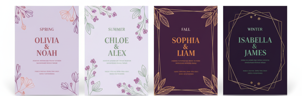 Choosing color combinations that fit your season or venue helps your invitations blend seamlessly with your wedding aesthetic.