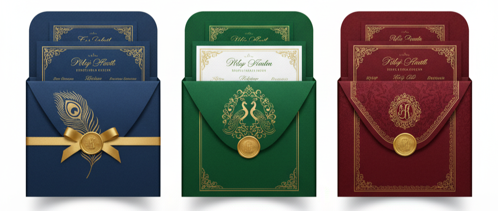 | Traditional Royal | Embossed paper, pocket folds, serif fonts | Cultural or formal weddings | Emerald, ivory, sapphire |