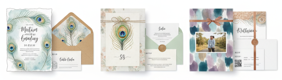 - Etsy: Ideal for couples looking for unique, handmade, or artistic invitations. Many designers offer hand-painted or digital peacock designs with full customization.