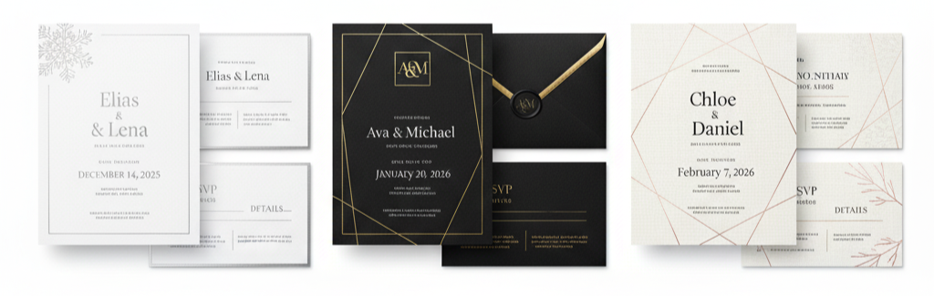 Key takeaway: Don’t just pick any invite—match it to your venue, vibe, and seasonal inspiration. A well-themed winter wedding invitation gives your guests a preview of something truly special.
