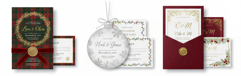 Getting married around the holidays? Lean into the spirit of the season with festive invitations that bring joy and celebration to life.